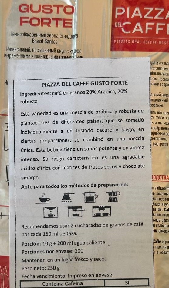 Café Piazza del Caffe Espresso Forte 1 Kg En grano