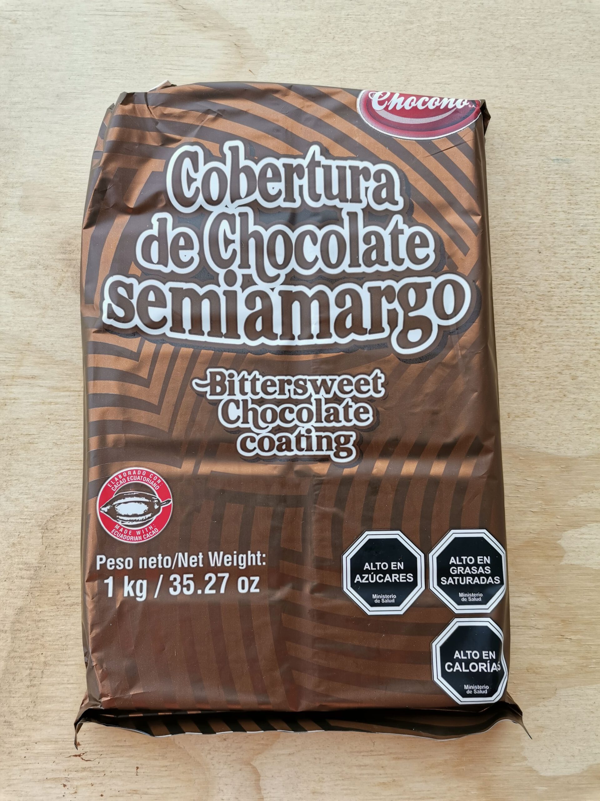 Azúcar, grasa vegetal, polvo de cacao, lecitina de soya, manteca de cacao, Pgpr, triesterato de sorbitan, vainillina.